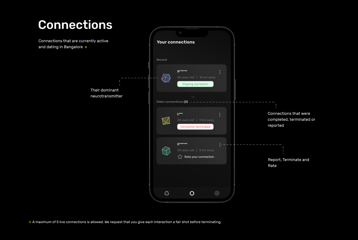 - We will never reveal your identity on the platform. Only you decide when, how and with whom your information is shared.